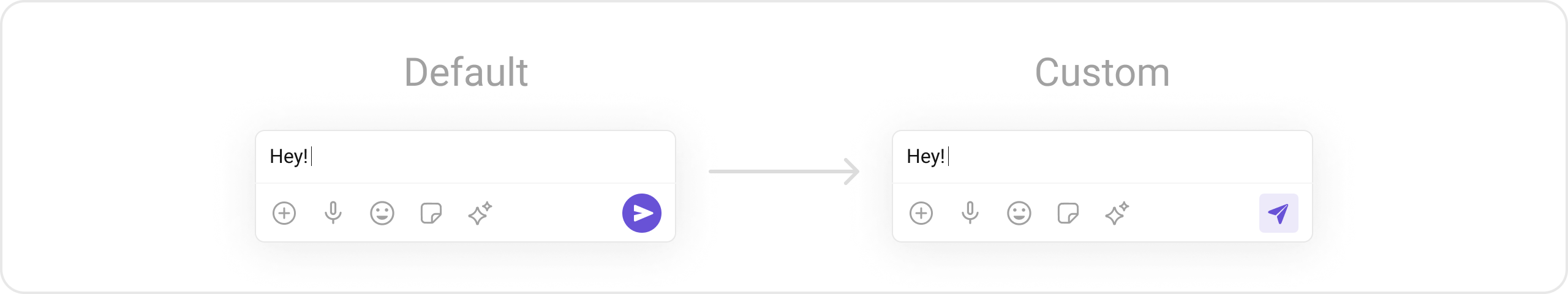 You can set a custom widget in place of the already existing send button widget. Using the sendButtonView property. Example Here is the complete example for reference: