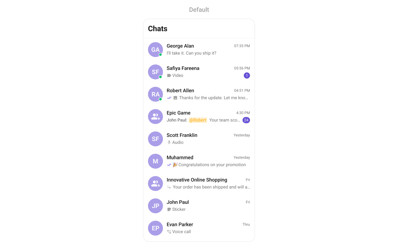 • Message Status Indicators – Show message status (e.g., Sent, Delivered, Read) alongside the last message.